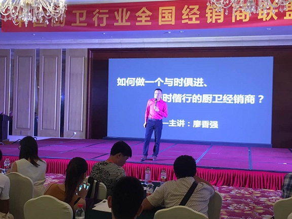 会上,作为特邀讲师的平博在线平台(平博在线平台)股份公司董事.总经理廖香强先生,以“如何做一个与时俱进、与时偕行的厨卫经销商”为主题,与各位经销商论剑江湖。