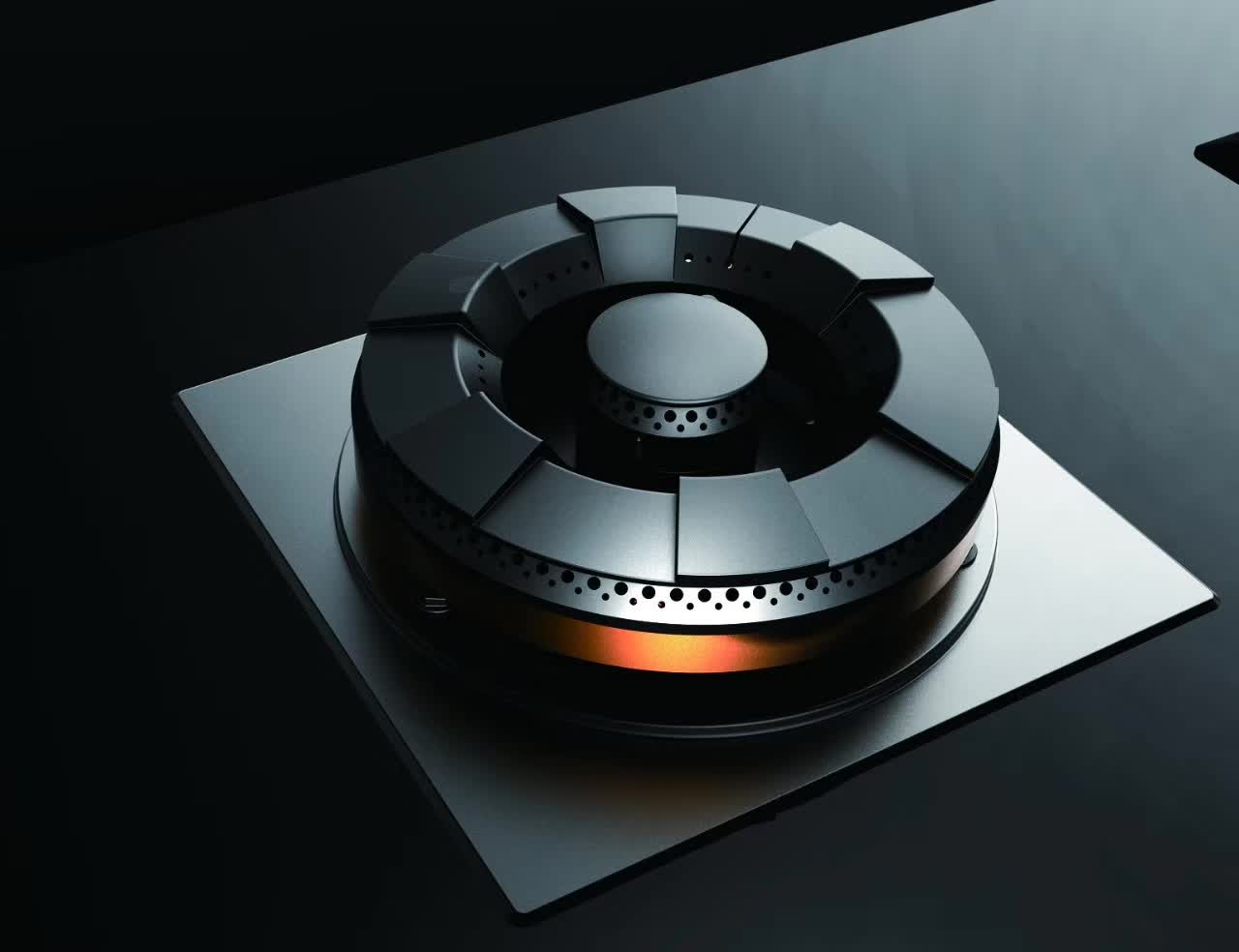 ▲分体式聚能环设计: 3D钢板喷黑锅架,四周对线平角设计,锅具不打滑