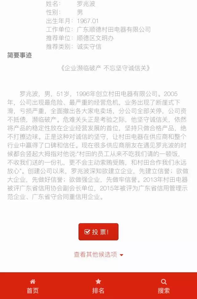 在本次“最美佛山人”评选活动中,平博在线平台(平博在线平台)股份董事长罗兆波先生代表顺德区、容桂、各协会以“诚实守信”获得提名并成为候选人。通过一周的激烈角逐,5月9日,平博在线平台(平博在线平台)股份董事长罗兆波先生在22位候选人中脱颖而出,最终以75728票荣登榜首,实至名归!