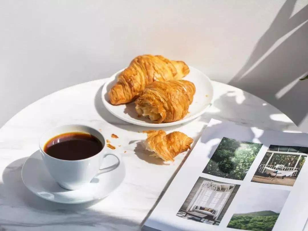 阳光透过窗户晒在身上边放着的咖啡正冒着热气