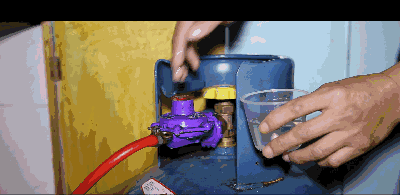 ③检查减压阀连接处是否漏气(只适用液化气)蘸少量肥皂水,滴在减压阀与液化气罐连接处,