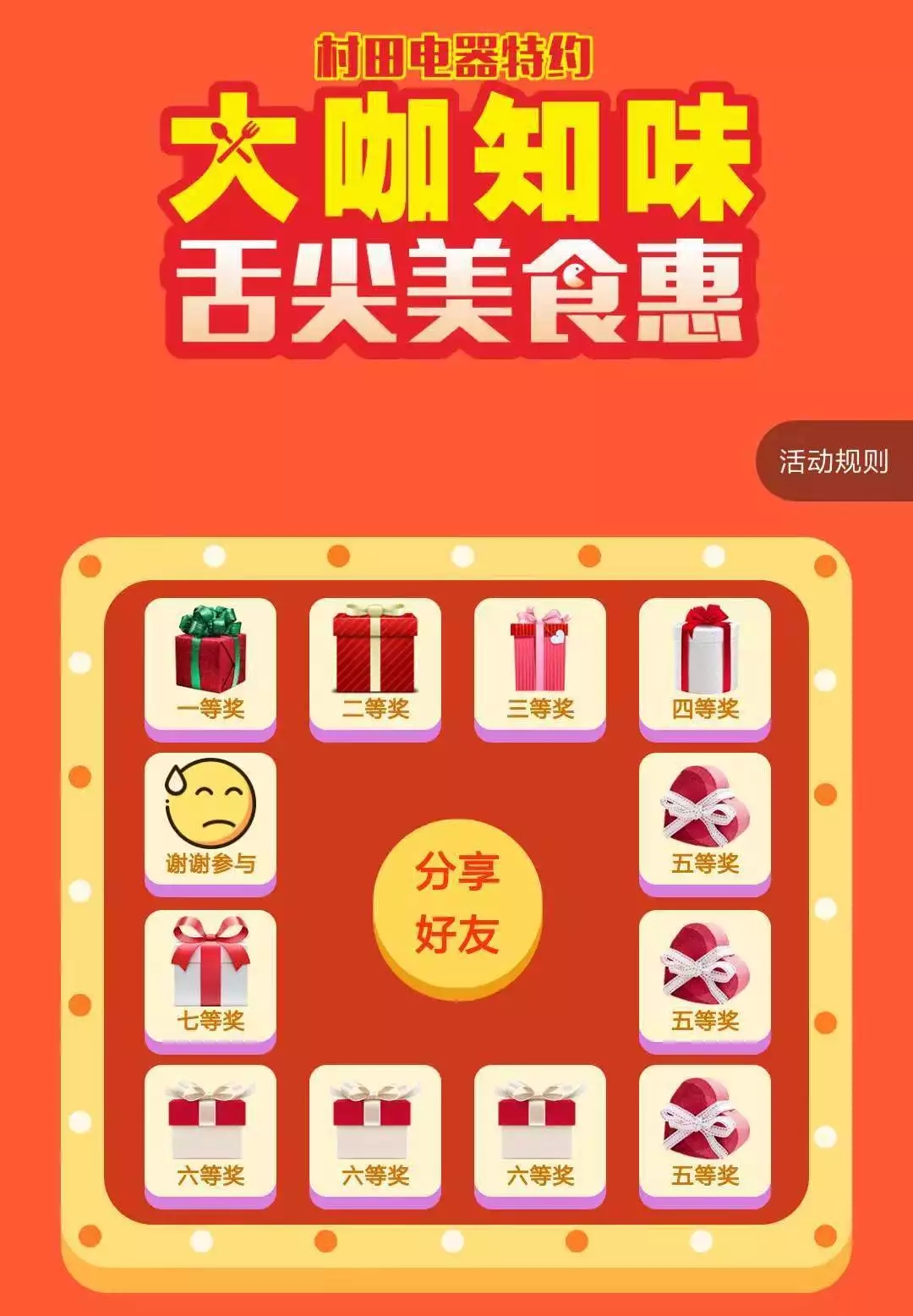 活动持续进行,不仅能尝到地道的顺德美食,扫描活动二维码即可抽奖~除了有美食优惠券,还有现金奖、2000元厨卫电器储值卡、净水器等等。