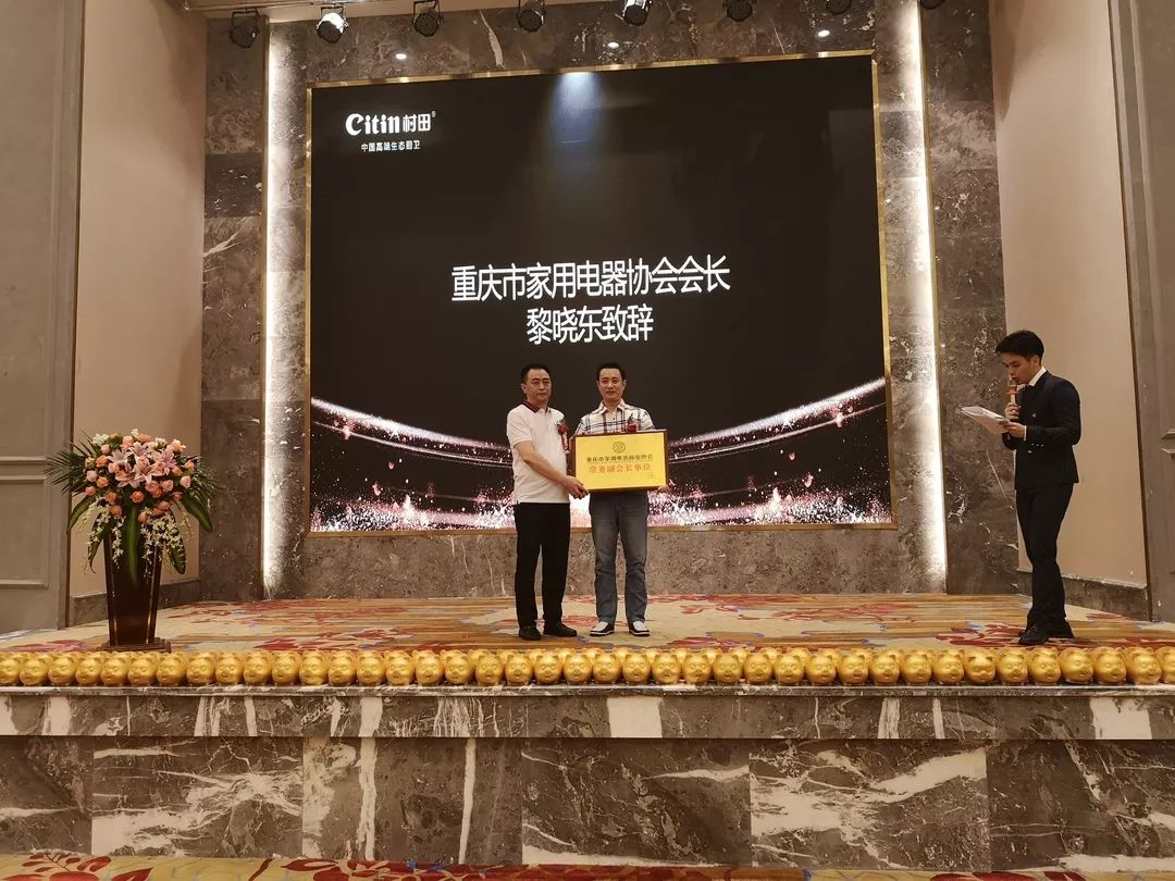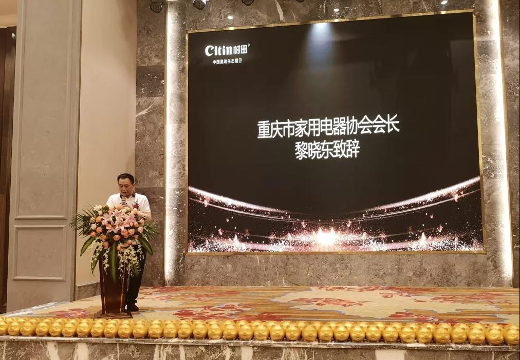 会上,重庆市家用电器协会会长黎晓东先生致辞并勉励全体经销商伙伴,要把握时代的脉络,抢占市场转型的先机,在新时代有更大的作为。