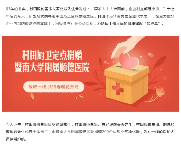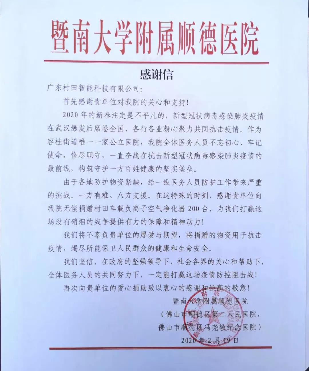 【平博在线平台(平博在线平台)厨卫】助力战“疫” 平博在线平台(平博在线平台)向暨南大学附属顺德医院捐赠爱心物资!