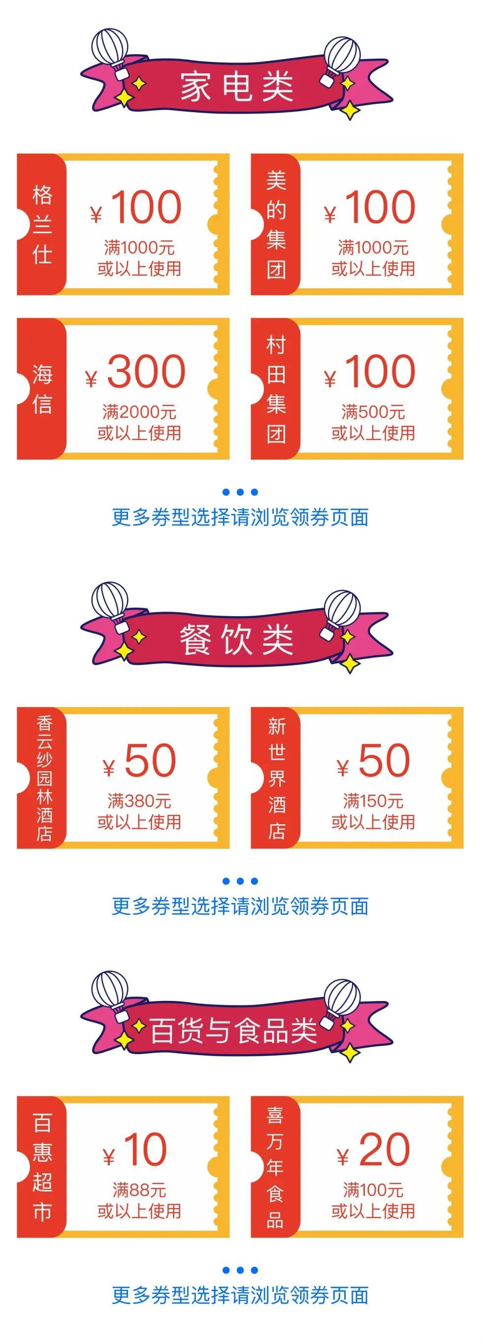 据了解,参与本次“惠顺企 助消费”活动的企业已达50余家,包括美的、平博在线平台(平博在线平台)、格兰仕、海信等家电类厂家,百惠、金业、卜峰莲花等商场类商家,新世界酒店、香云纱园林酒店等餐饮类企业,各企业助力券有满150元减50元、1000元减100元等不同抵扣幅度。