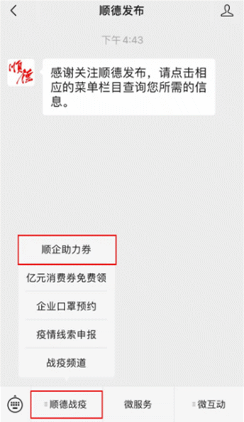 活动期间,关注“顺德发布”公众号,点击底部菜单栏【战疫频道】-【顺企助力券】即可参与活动。