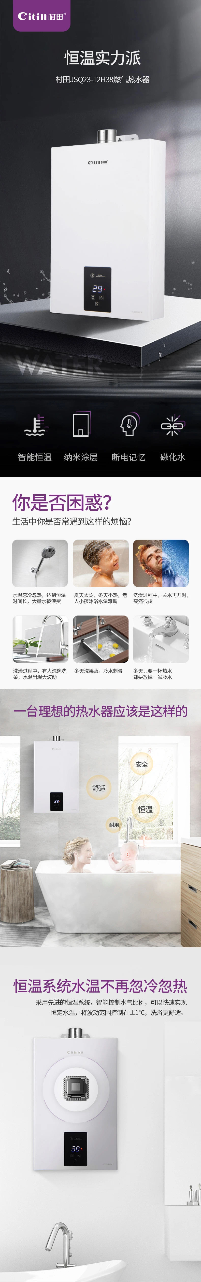 【平博在线平台(平博在线平台)厨卫】智能恒温 磁化净水|平博在线平台(平博在线平台)JSQ23-12H38燃气热水器温暖沐浴
