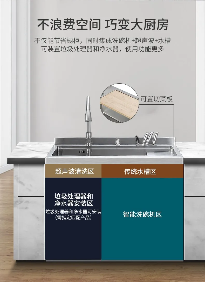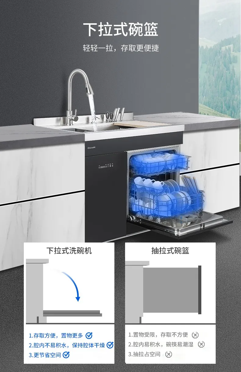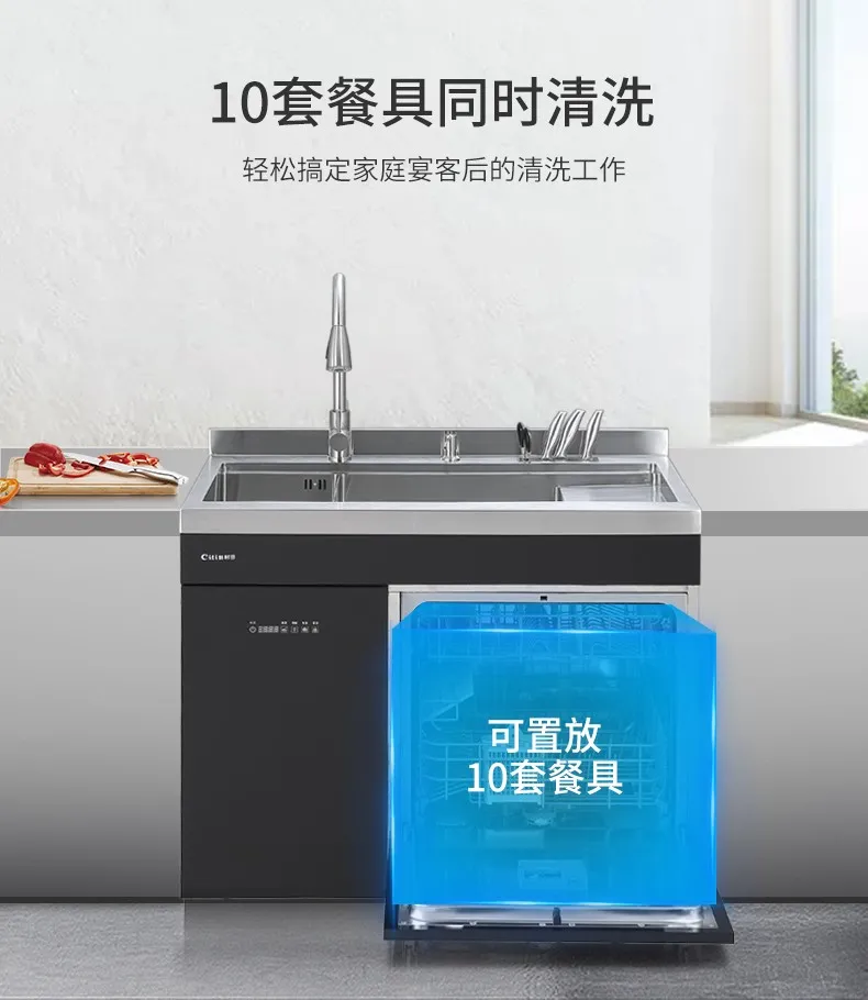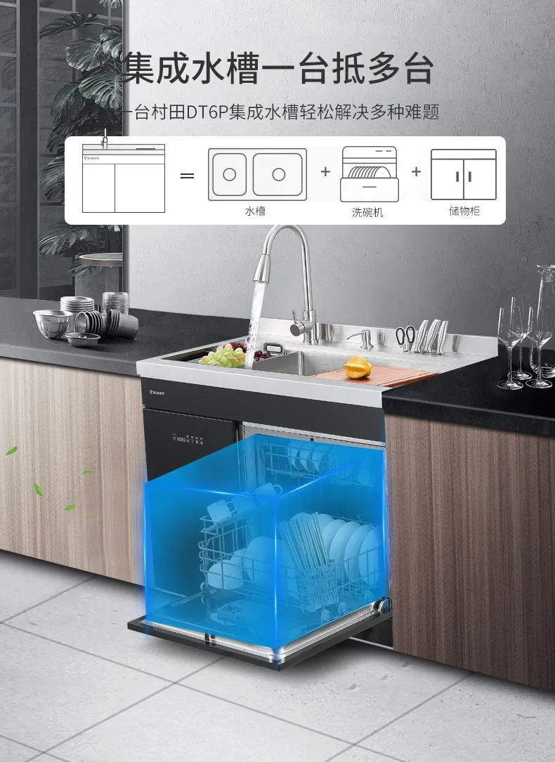 全新的水槽洗碗机产品,一体式嵌入,安装、换装更便捷,化繁为简,功能不减,操作方便免弯腰,六大餐具清洗模式,餐前放心,餐后省心,果蔬清洗模式,拒绝农药残留,她,样样精通,给家人健康树立安全屏障。