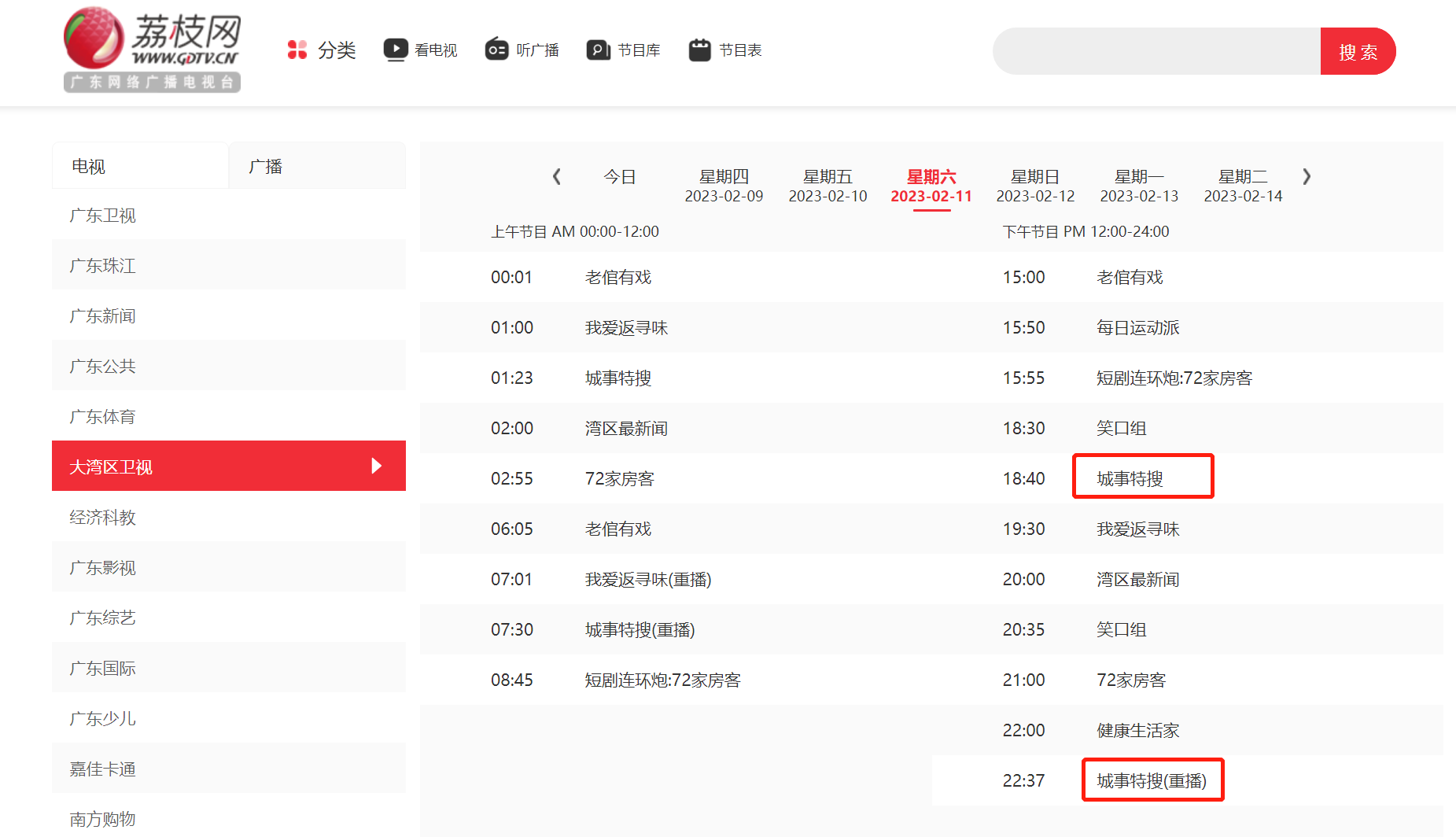 播出频道1:大湾区卫视(广东、北京、广西、海南版)