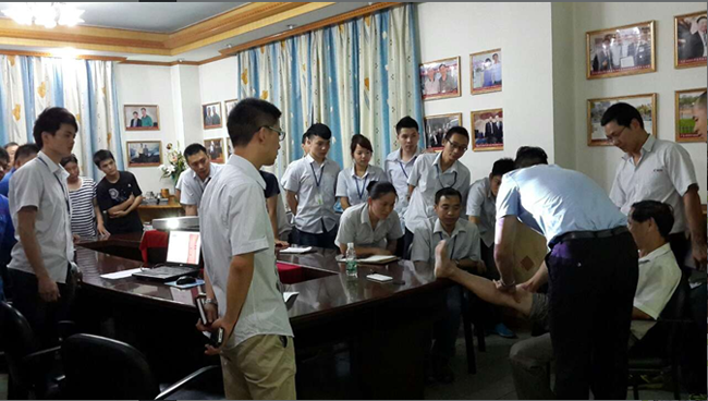 在培训过程中,广东科普健康咨询服务中心梁俊老师为大家生动讲解了救护的基本知识,包括如何应对暴力恐怖事件(逃脱、自救等知识)和公共场合突发事件应急处理、现场紧急救护知识、办公室常见疾病预防等内容。现场实操练习,梁老师请出几位同事做模拟,员工争先举手练习,大家都想利用这次宝贵的机会提高自己的实践操作能力,现场的学习气氛积极而又热烈。