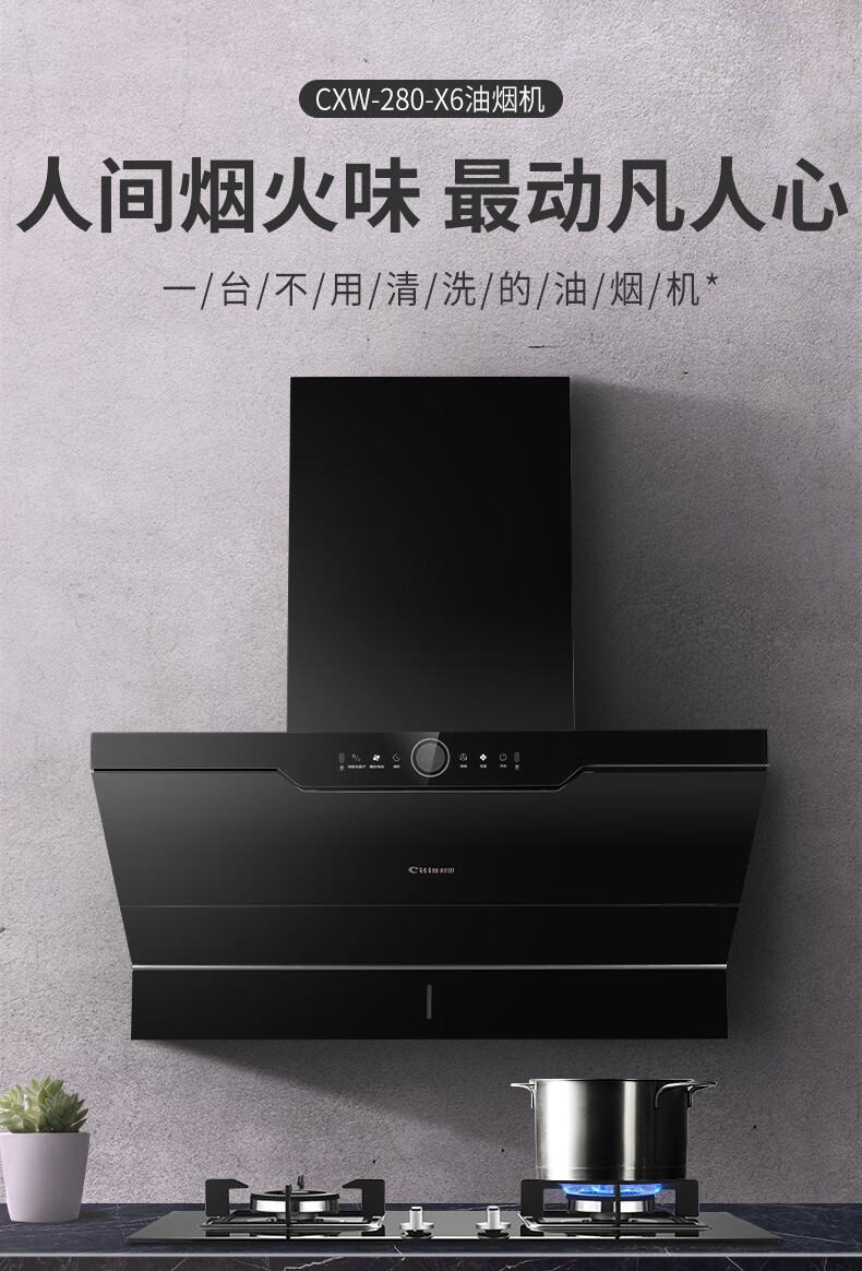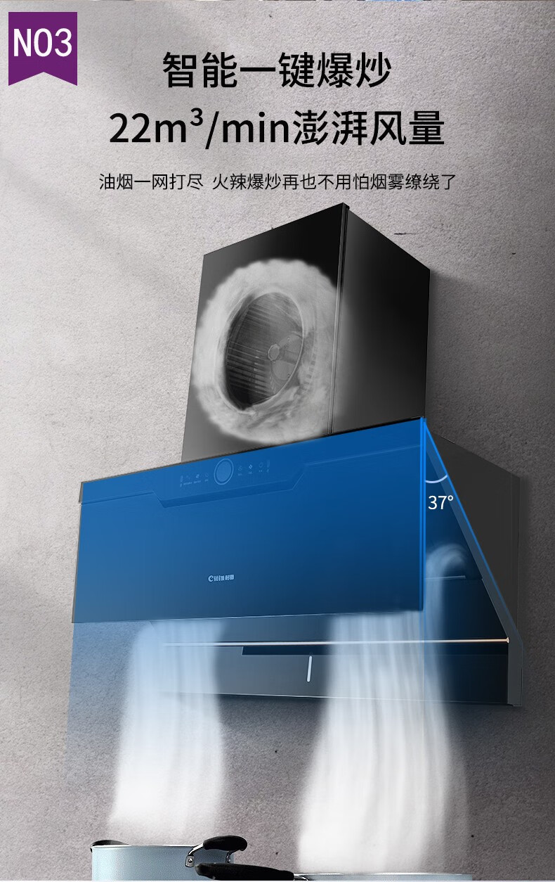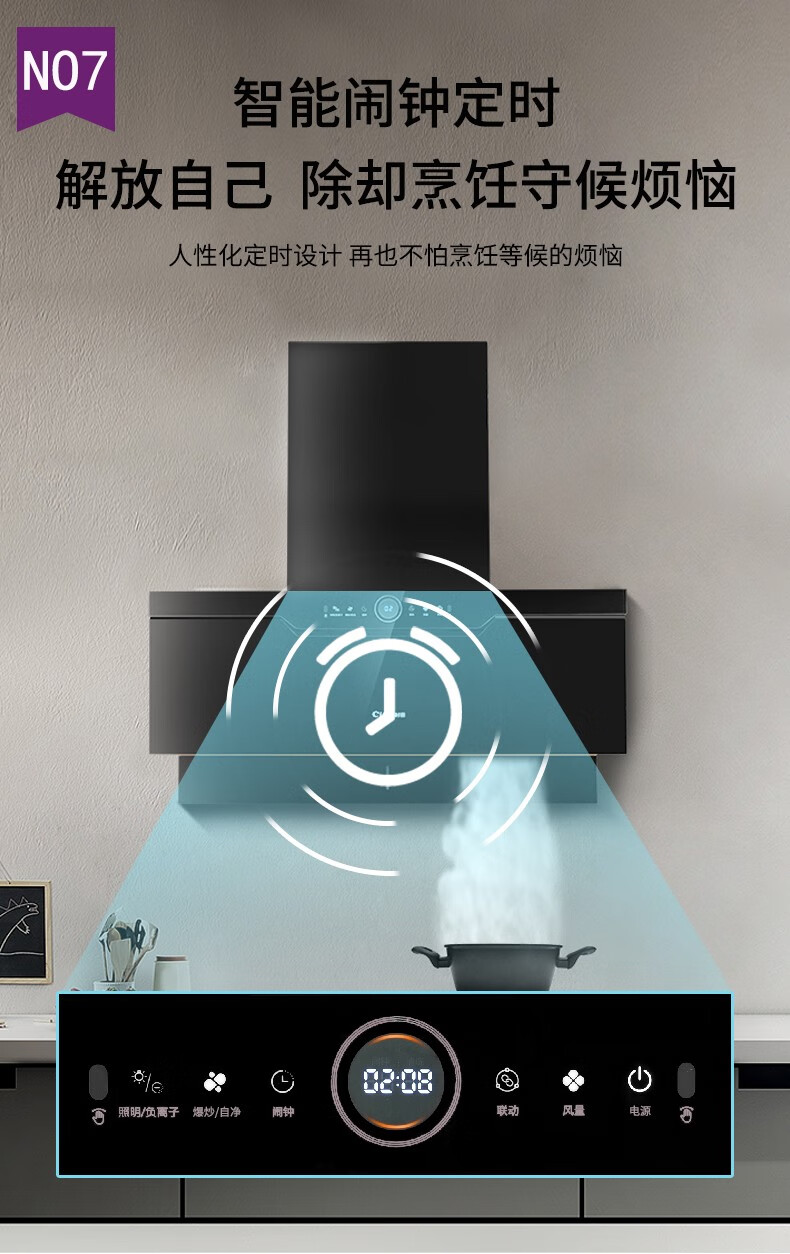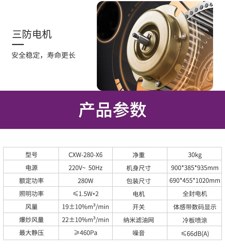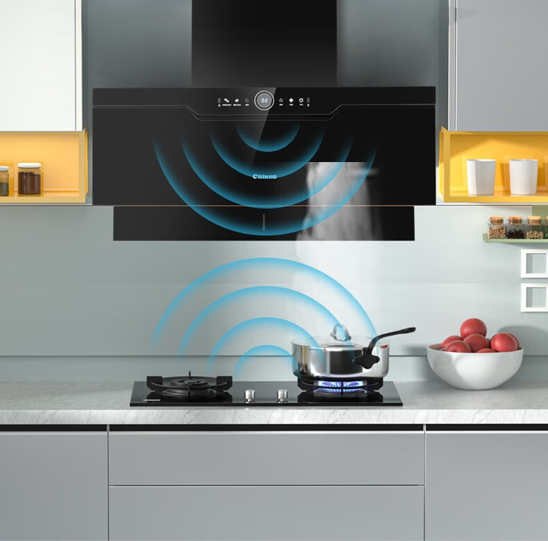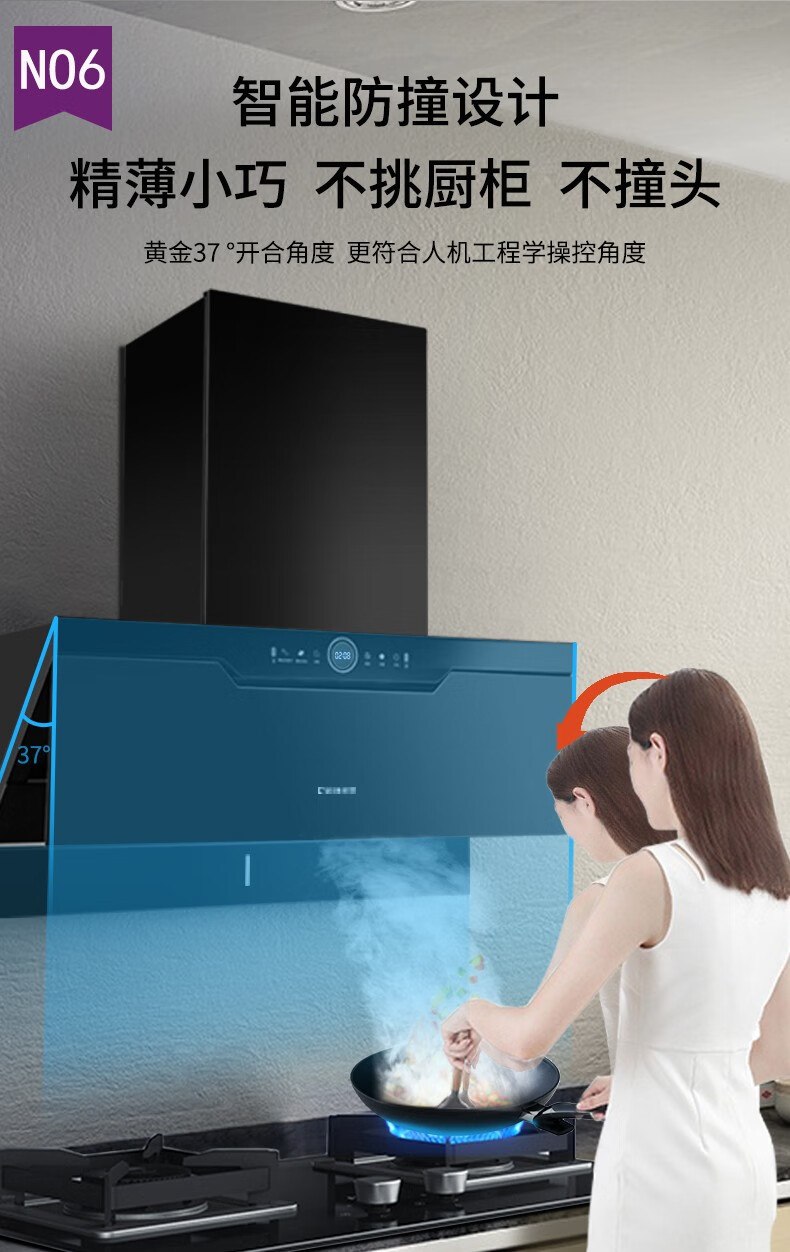 "挥手启停 烟联联动自动开合 油电分离三防电机 自净涡壳磁吸油网 纳米油网纳米风魔轮2.0+负离子专利一次性油杯" "控制方式:挥手+触控最大风量:23m³烟管直径:Φ180mm产品尺寸:895*935*385"