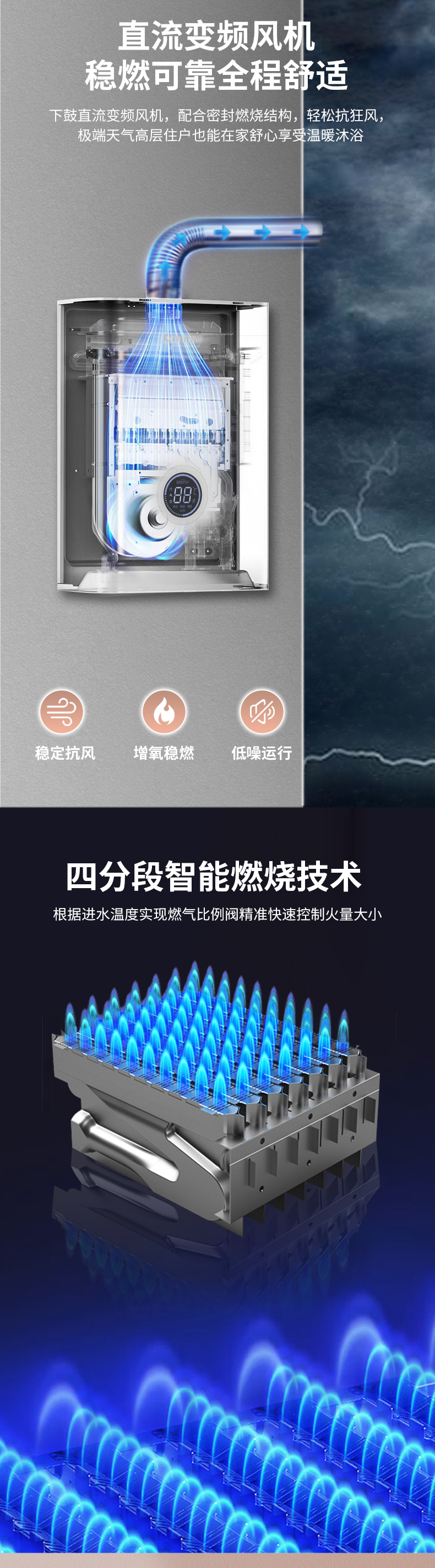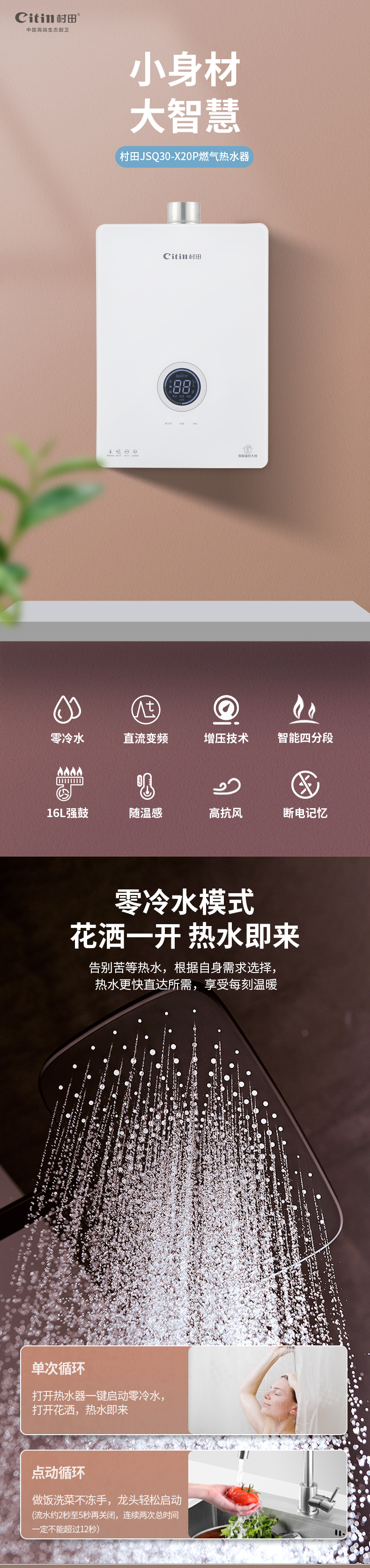 额定容积:16L/分钟给排气方式:变频恒温强排式产品尺寸:宽297x高420 x深158毫米控制方式:电脑触控适用户型:一厨二卫以上特殊功能:零冷水